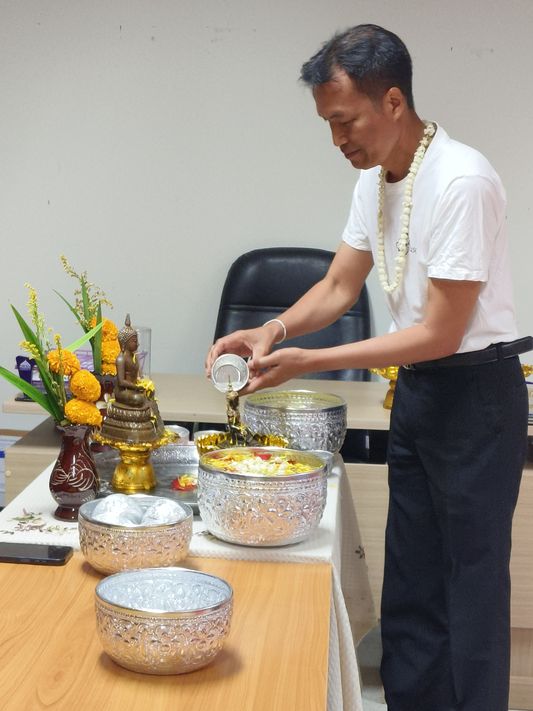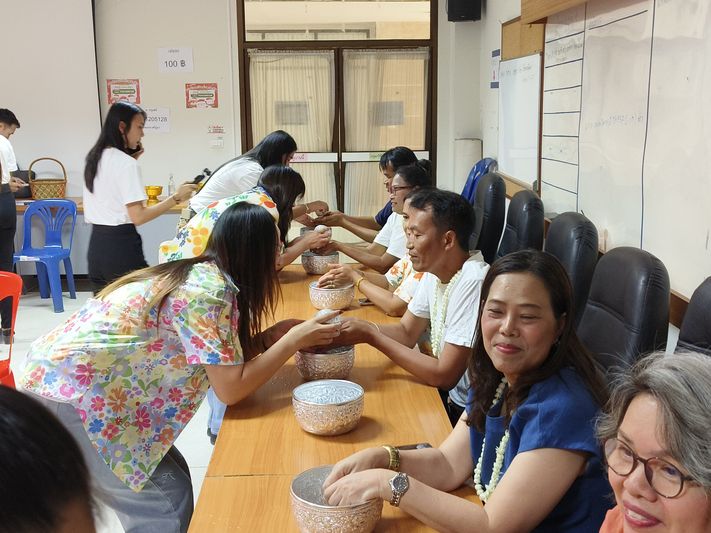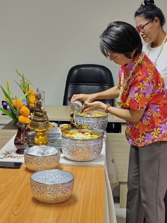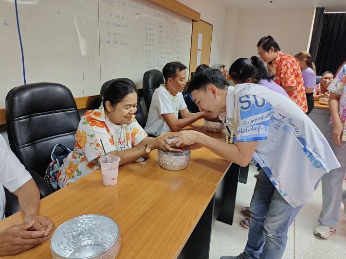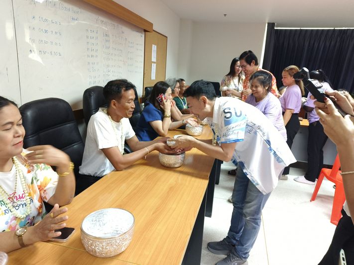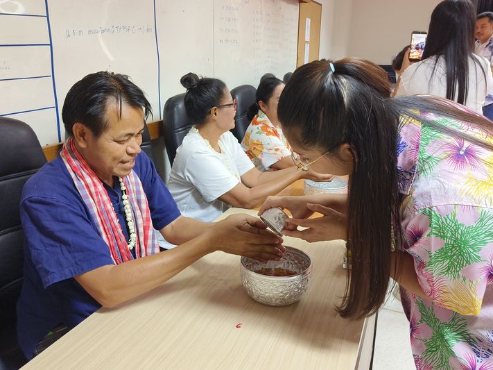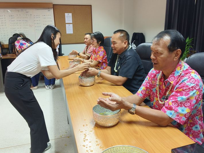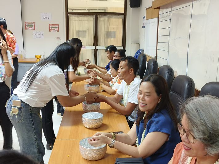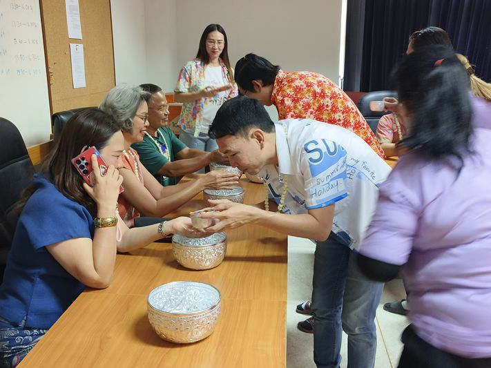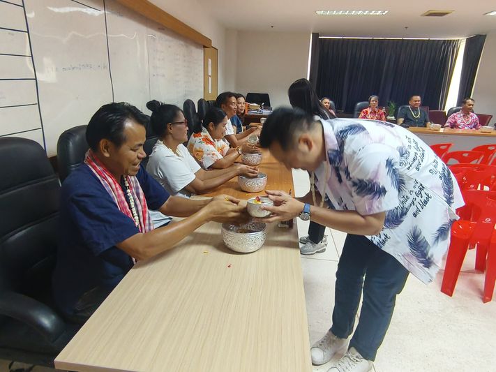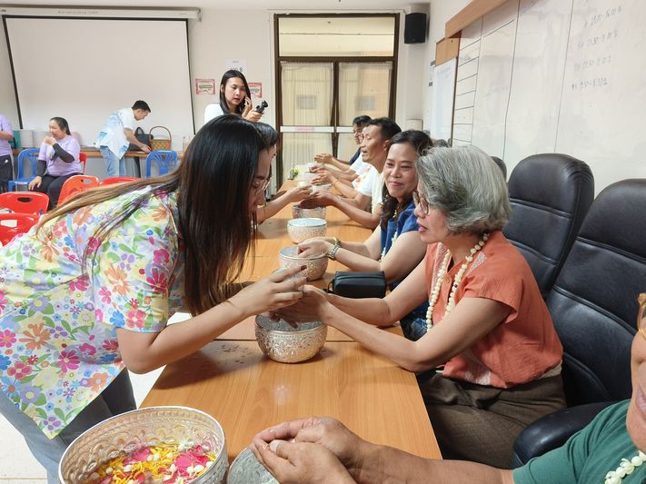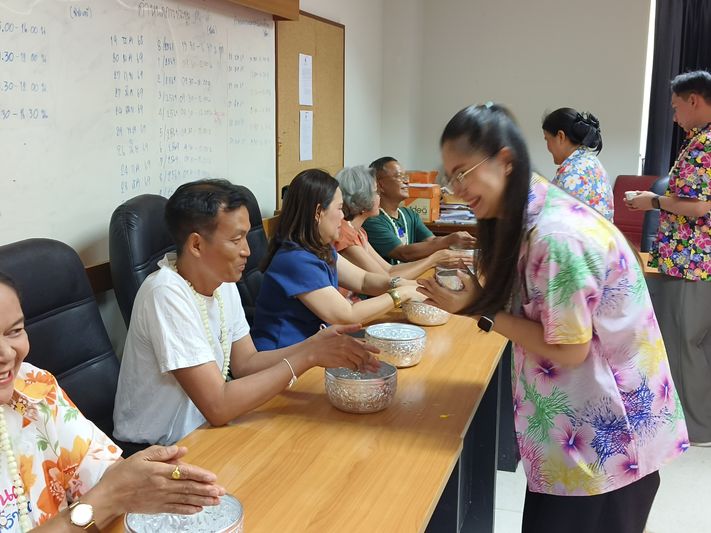 คณะมนุษยศาสตร์และสังคมศาสตร์ มหาวิทยาลัยราชภัฏมหาสารคาม จัดงานสืบสานประเพณีสงกรานต์ “รดน้ำ ขอพร ผู้อาวุโส” ณ ห้องประชุมช่อพะยอม 2 อาคารศูนย์การเรียนรู้ภูมิปัญญาท้องถิ่น โดยมีผู้บริหาร คณาจารย์ และบุคลากร เข้าร่วมในงานวันนี้