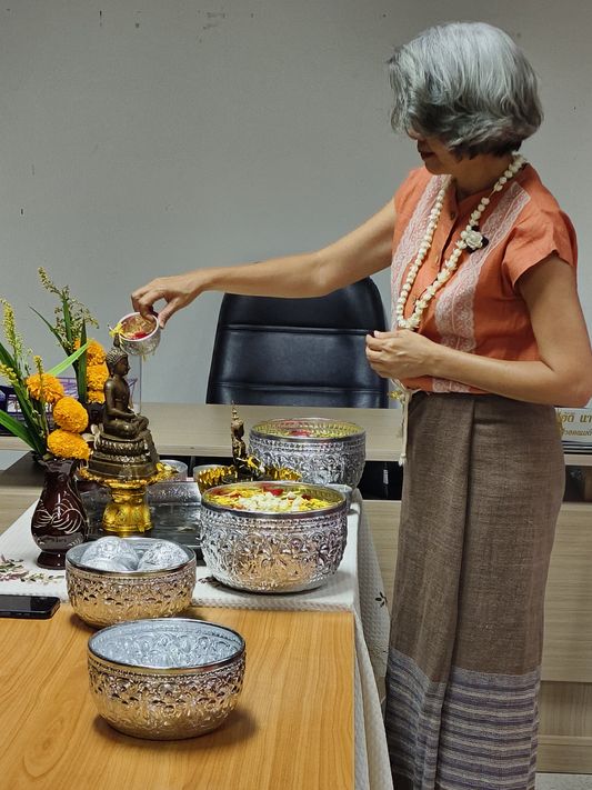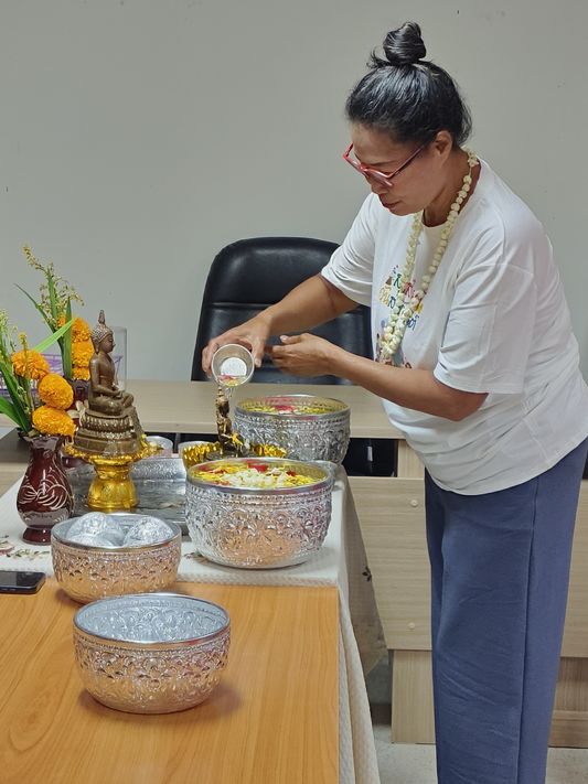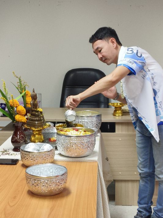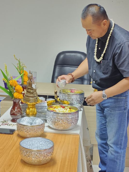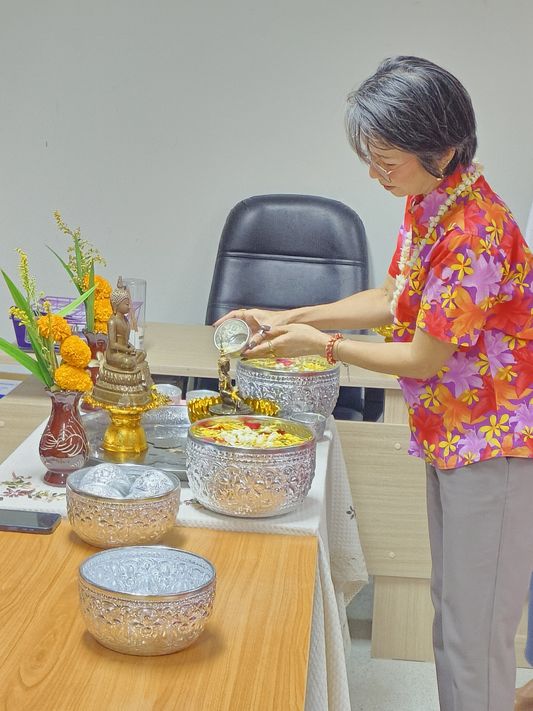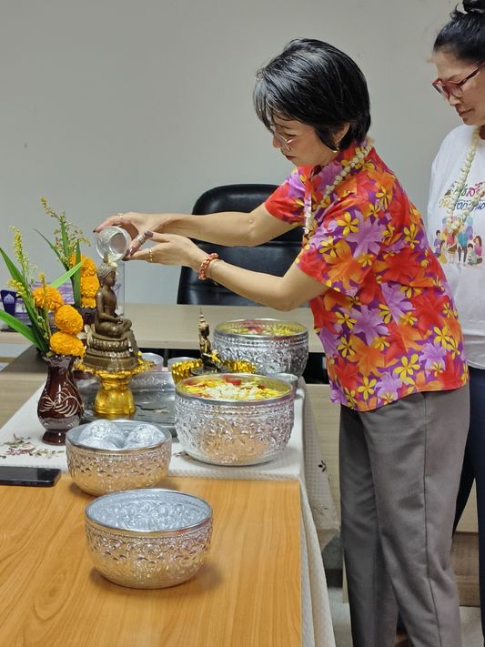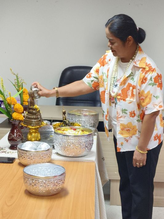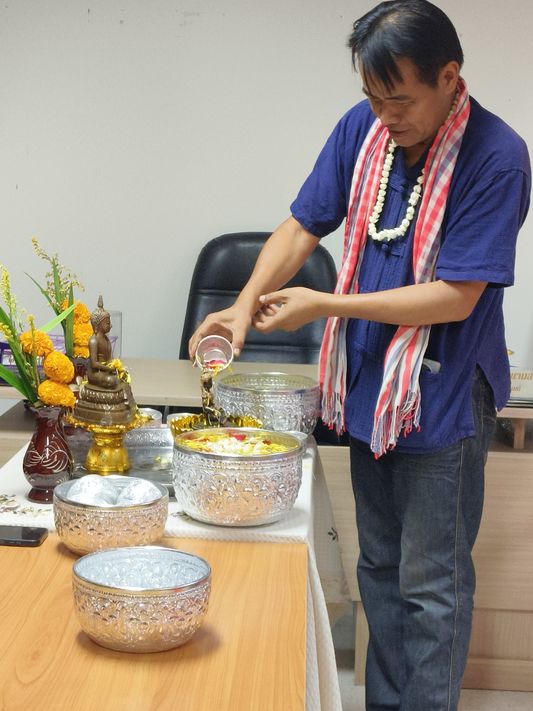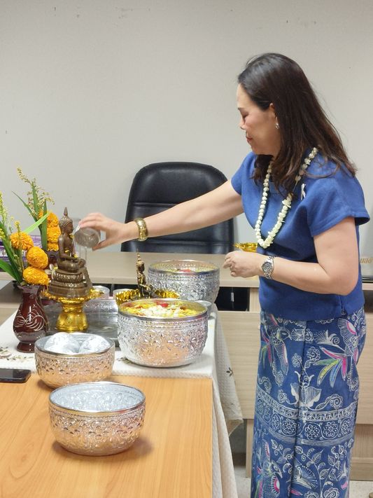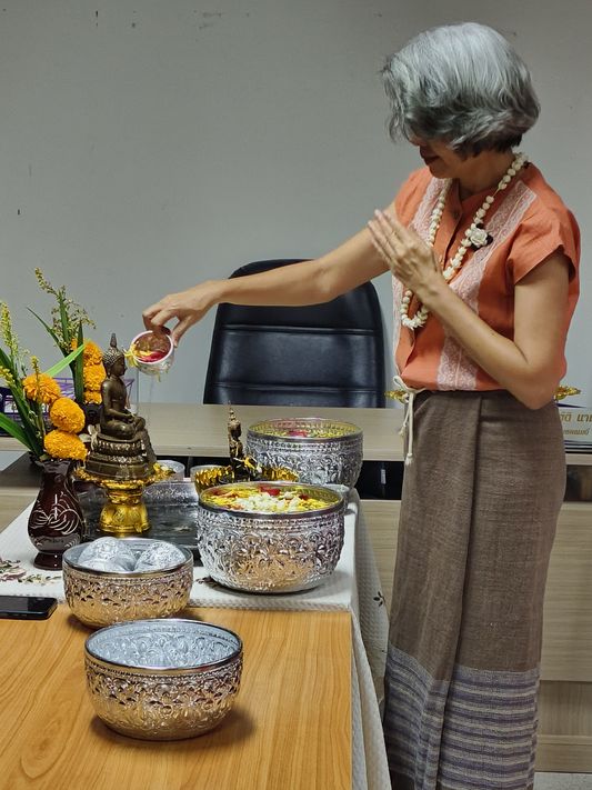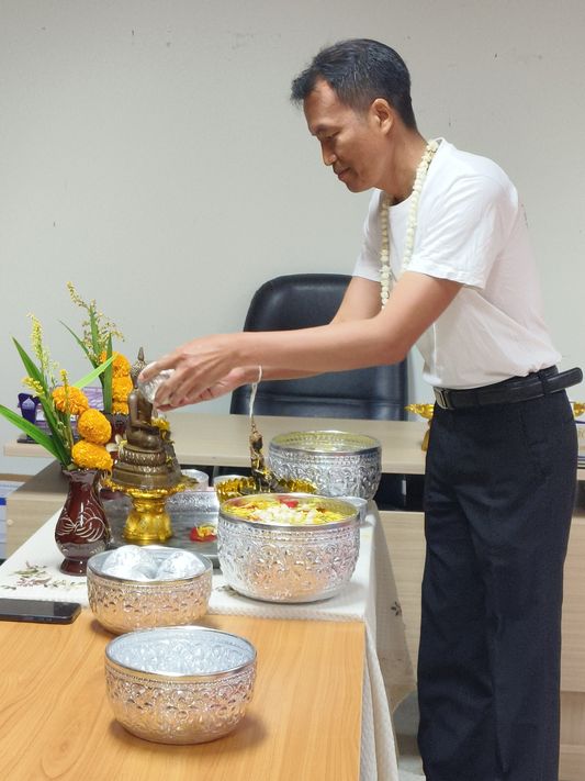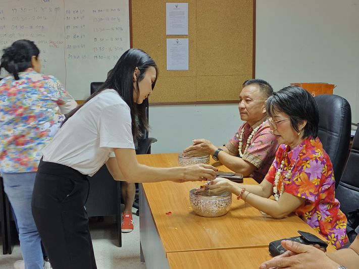 คณะมนุษยศาสตร์และสังคมศาสตร์ มหาวิทยาลัยราชภัฏมหาสารคาม จัดงานสืบสานประเพณีสงกรานต์ “รดน้ำ ขอพร ผู้อาวุโส” ณ ห้องประชุมช่อพะยอม 2 อาคารศูนย์การเรียนรู้ภูมิปัญญาท้องถิ่น โดยมีผู้บริหาร คณาจารย์ และบุคลากร เข้าร่วมในงานวันนี้