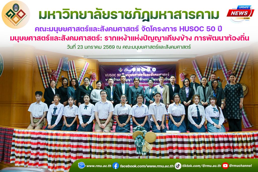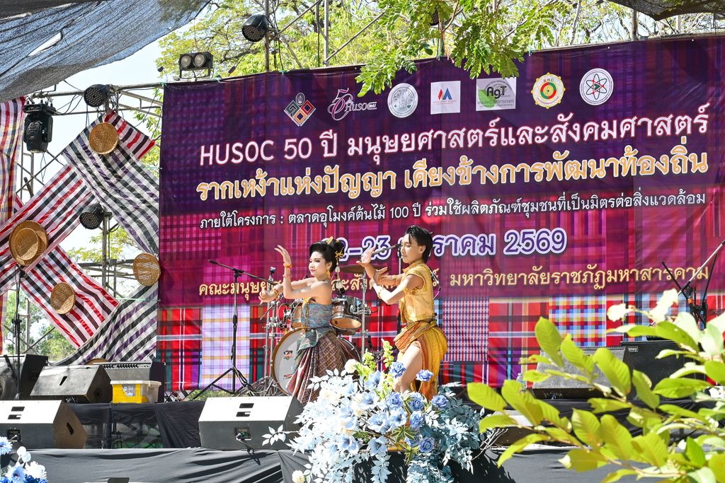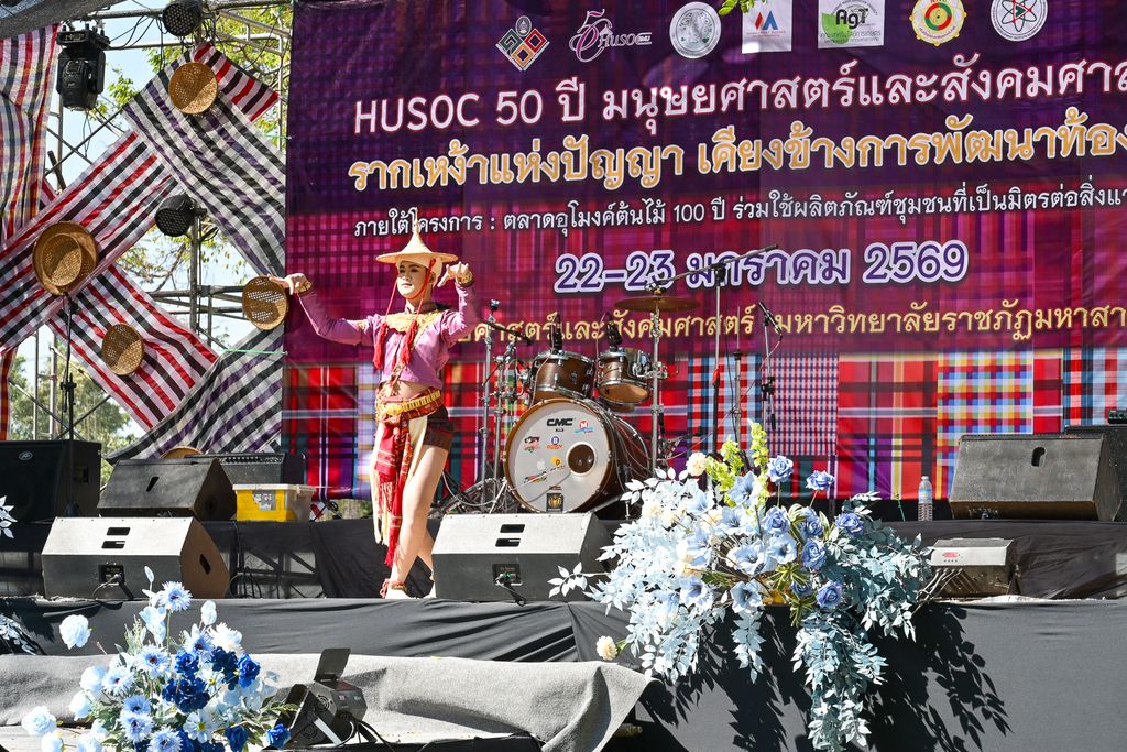 วันศุกร์ที่ 23 มกราคม 2569 คณะมนุษยศาสตร์และสังคมศาสตร์ จัดโครงการ HUSOC 50 ปี มนุษยศาสตร์และสังคมศาสตร์: รากเหง้าแห่งปัญญา เคียงข้างการพัฒนาท้องถิ่น ผู้ช่วยศาสตราจารย์ ดร.เนตรชนก จันทร์สว่าง รักษาราชการแทนอธิการบดีมหาวิทยาลัยราชภัฏมหาสารคาม เป็นประธานเปิดงานฯ HUSOC 50 ปี มนุษยศาสตร์และสังคมศาสตร์ฯ วันที่สอง ซึ่งกิจกรรมในวันนี้มีการแข่งขันกล่าวสุนทรพจน์ภาษาไทย และภาษาอังกฤษ พร้อมกับการประกวด ฟ้อนเกี้ยวคอนเทสต์ 2025 ระดับนักเรียนชั้นมัธยมศึกษาตอนปลาย ประกวดวงดนตรี ณ ห้องประชุมอาจารย์วิศาล ศิวารัตน์ (Auditorium 1) นับเป็นโอกาสอันดีที่เปิดโอกาสให้เด็กนักเรียนมีพื้นที่ได้แสดงความสามารถ และสะท้อนให้เห็นถึงบทบาทสำคัญของศาสตร์ด้าน มนุษยศาสตร์และสังคมศาสตร์ ซึ่งมิได้เป็นเพียงการถ่ายทอด องค์ความรู้ ทางวิชาการเท่านั้น หากแต่เป็นรากฐานสำคัญในการหล่อหลอมความคิด คุณธรรม จริยธรรม อัตลักษณ์ และความเป็นพลเมืองที่เข้มแข็ง อันจะ นำไปสู่การพัฒนาท้องถิ่น และประเทศชาติอย่างมั่นคงและยั่งยืน ต่อไป